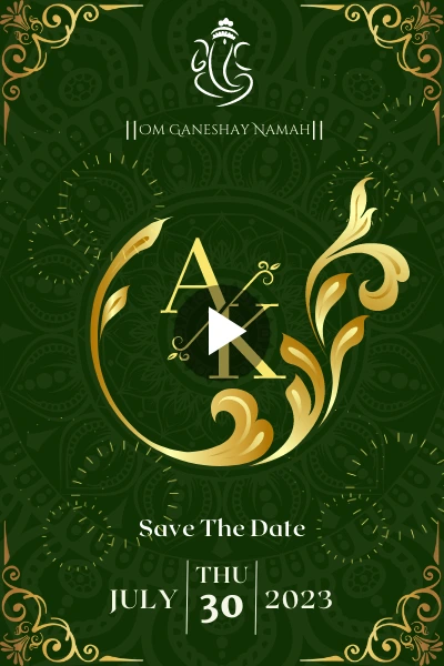 Green Golden Border Video Wedding Invitation